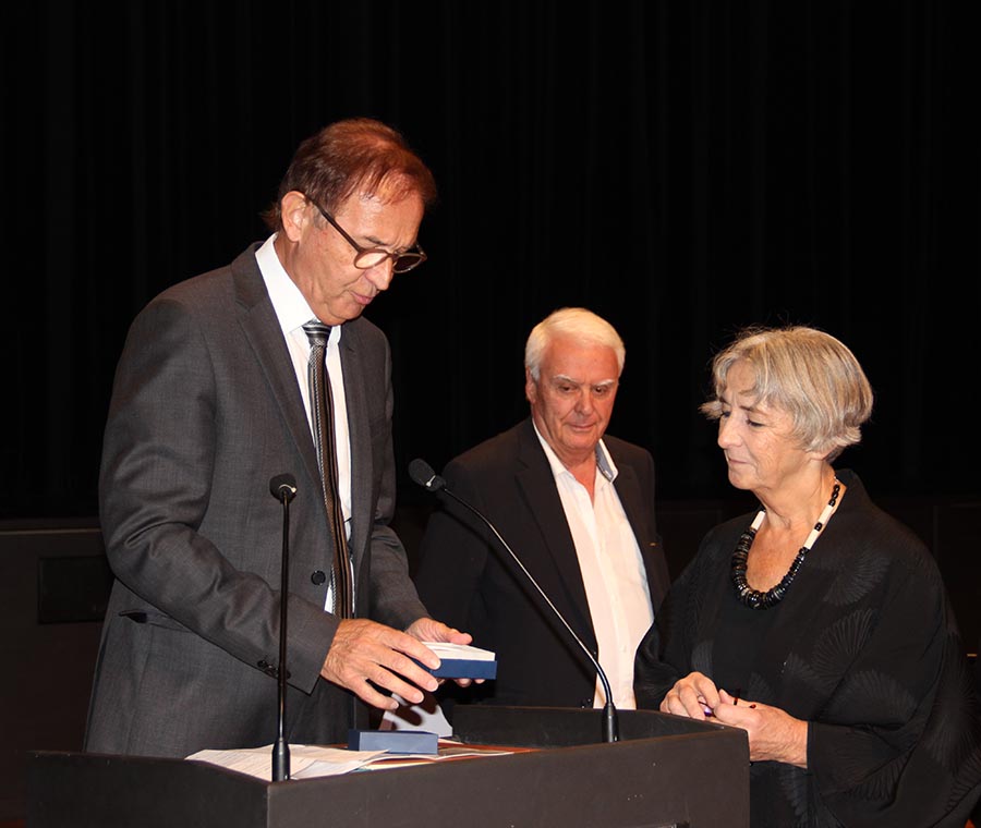 Le Président de l'AYAC prend la parole et les invités d'honneur reçoivent la Médaille de la Ville des mains du Maire d'Yvetot