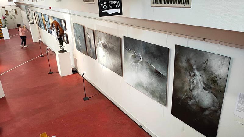 mais également les stages qu'il anime. Il expose aussi en galeries et autres salons ; à Laval, Cancale, Dinard,